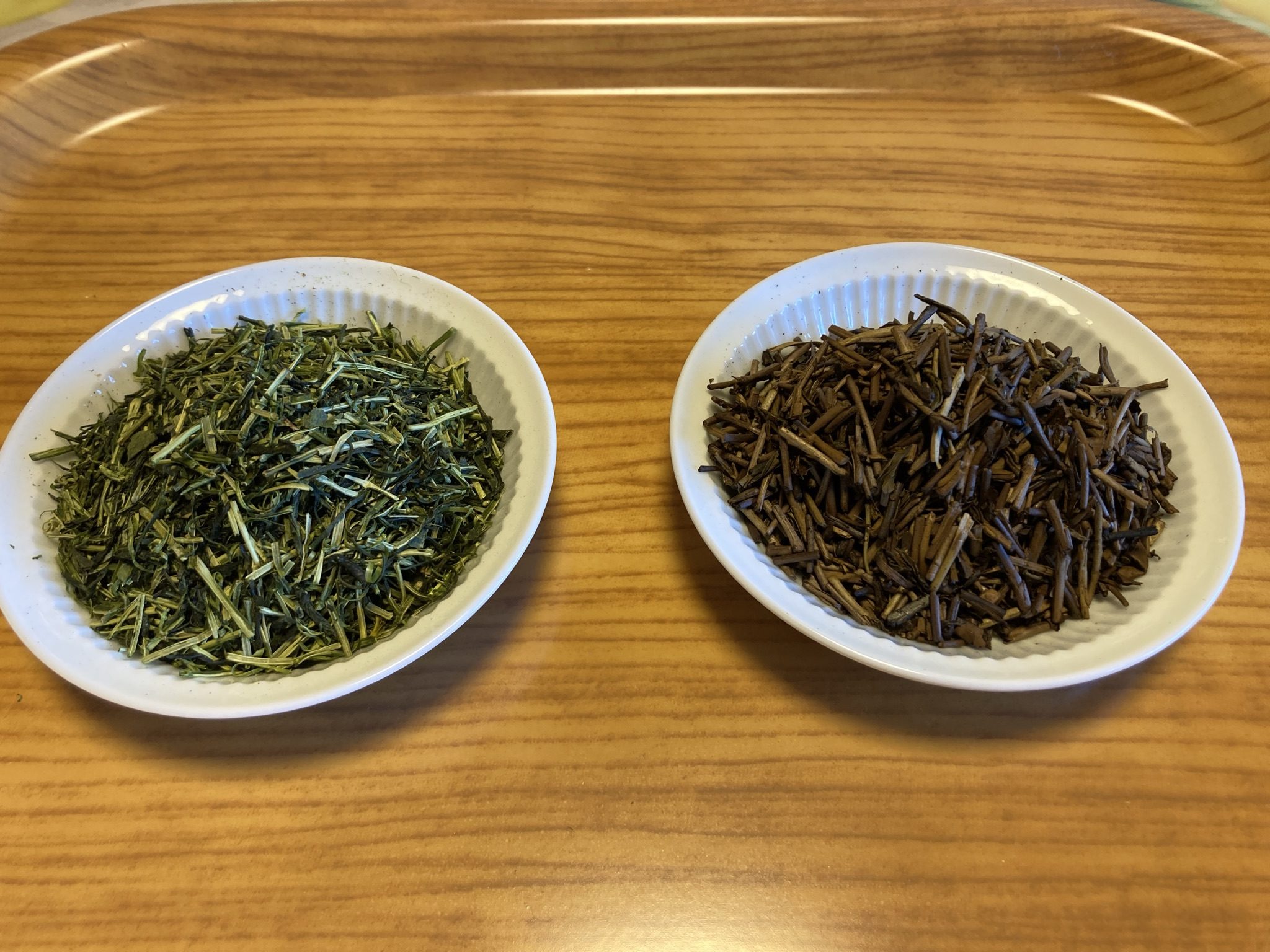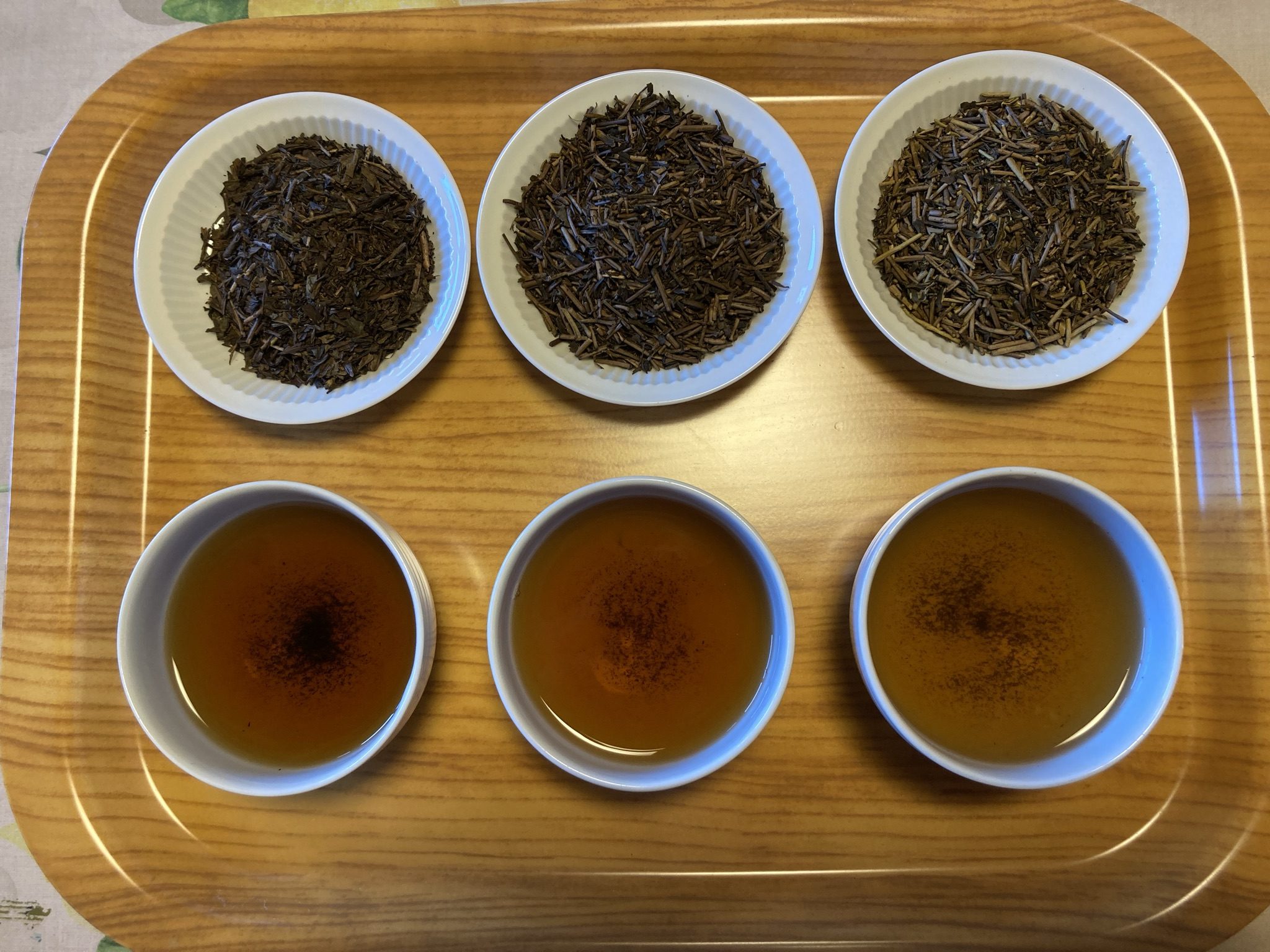 ほうじ茶を比較してみました。 左が市販のもの、真ん中が我が家のこれまでのもの、そして右が新しいほうじ茶。